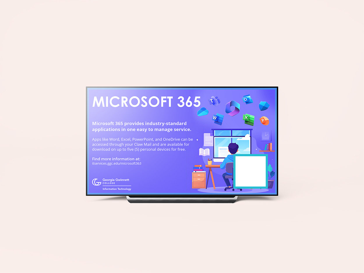 In my role in the Information Technology (IT) department, I serve as the primary web content manager for the IT website and digital designer for IT software adoption campaigns. These images are a few of the digital advertisements running across all campus digital displays for the 2024 -2025 school year. Additionally, print materials from new student and staff orientations are displayed.